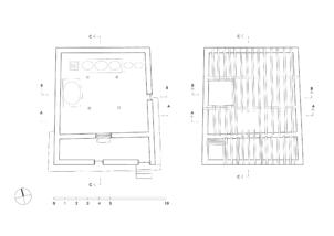 The temple lies on a slightly lower terraced area and is approximately north-south oriented. The external dimensions are 9.00 by 10.70 meters, the facade on the south side is 6.50 meters heigh. The entrance is located on the right side of the south facade, where some stone steps and a simple wooden door give access to a narrow vestibule. In the middle of the vestibules northern wall the main room is accessible through a door with a carved wooden frame.