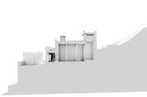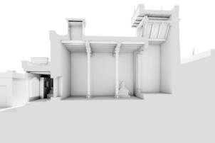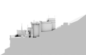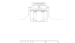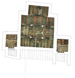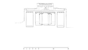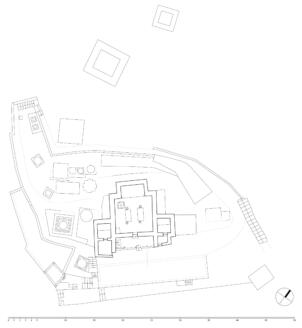 Southern view of the buidings placed in front the temple. Neuwirth 2003